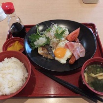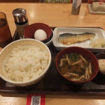 釣りの前にすき家のさば朝食(葉鹿店)