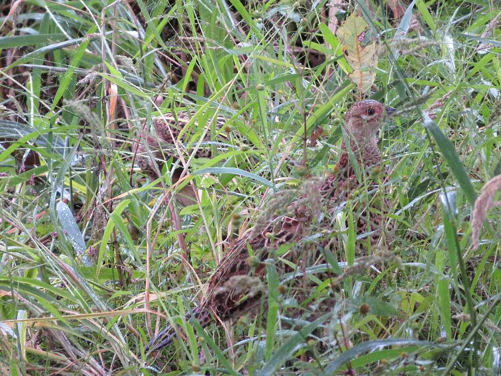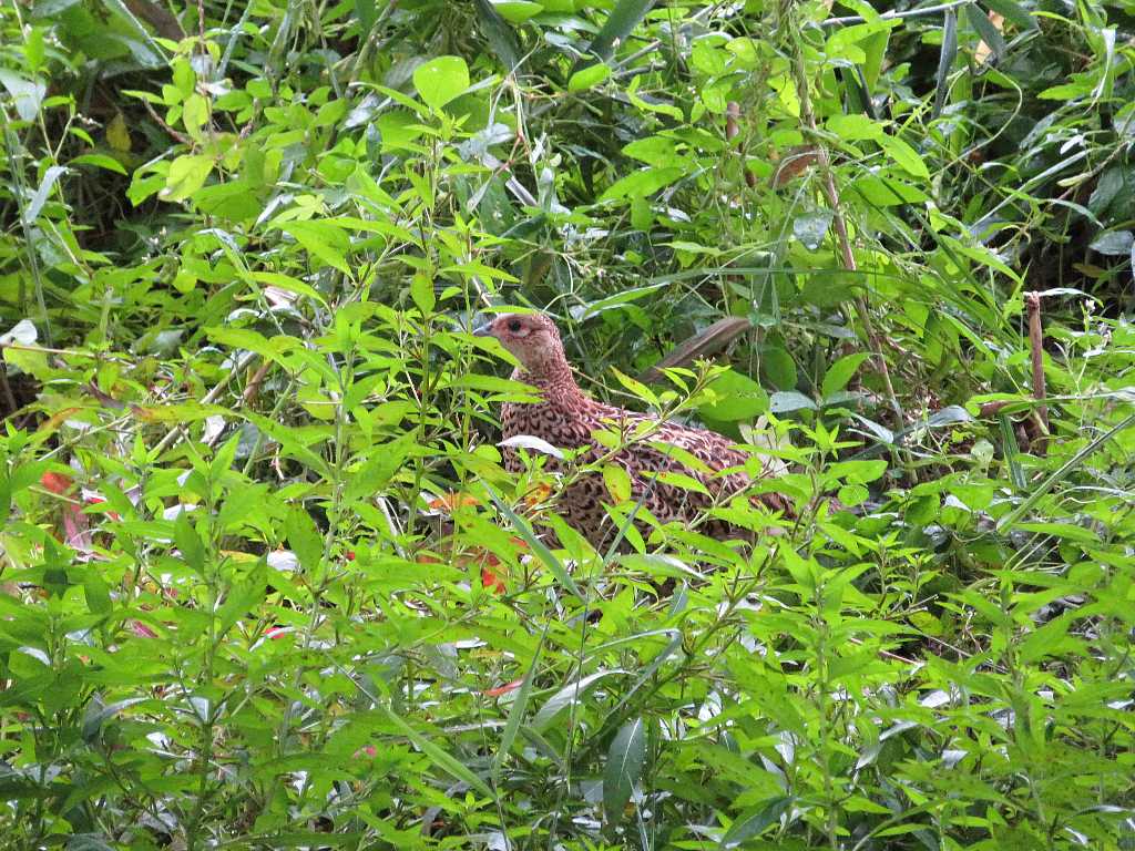 雨の中キジの若鳥を撮る(多々良沼公園) 2022年10月06日 04:19 野鳥観察シェルターで雨宿りし小降りになって撮影ポイントに戻るとキジの若鳥がいましたこれは親鳥かな周りを見渡すようにしていました四羽いて一羽は親鳥のようだ・・・草の実を食べているメスの若鳥が3羽で親が1羽オスの若鳥が2羽いるはずだけど・・・藪の中は撮り辛いな~強引にデジタルズームこれでキジは藪に消えたモズが木の向こう側に来たから隙間を見つけて撮るしばらくして後ろを見たら親鳥がいたよく見たら4羽いました道路脇の水路に上がってきた周りを見る親鳥だ栽培池の葦原に入って行ったオスの若鳥が見えなかったがどうしたんだろう最後まで見て頂きありがとうございました 「野鳥と野生動物」カテゴリの最新記事 タグ :#多々良沼公園#キジ#若鳥 < 前の記事次の記事 > コメント このブログにコメントするにはログインが必要です。 さんログアウト この記事には許可ユーザしかコメントができません。 コメントフォーム 名前 コメント 記事の評価 リセット リセット 顔 星 情報を記憶 コメントを投稿する