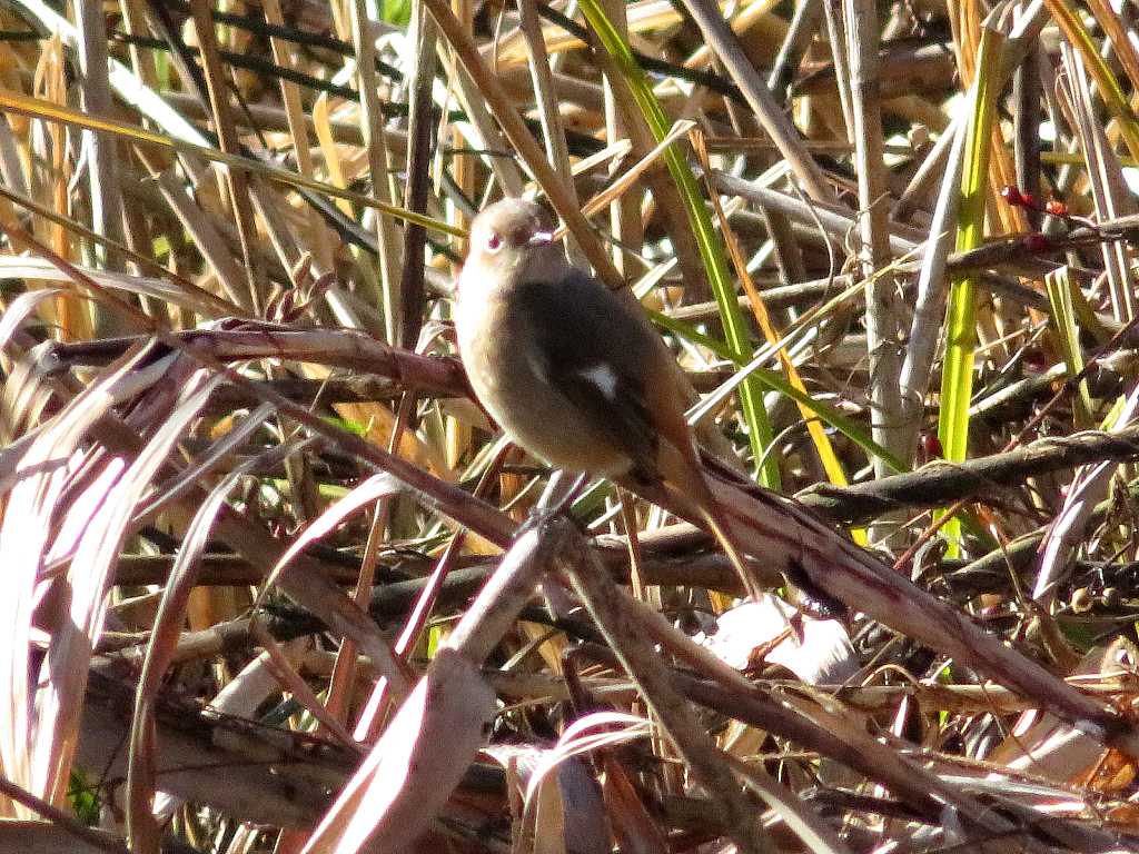 寒くて野鳥が来ないが遠くにジョウビタキのメスがいました