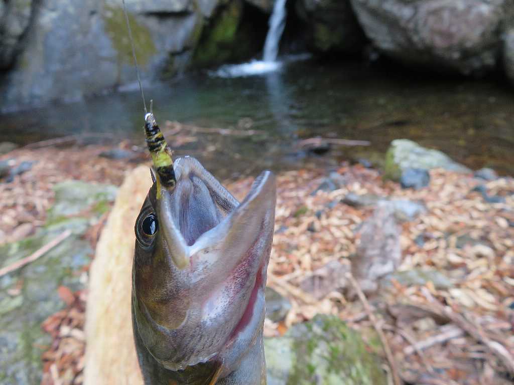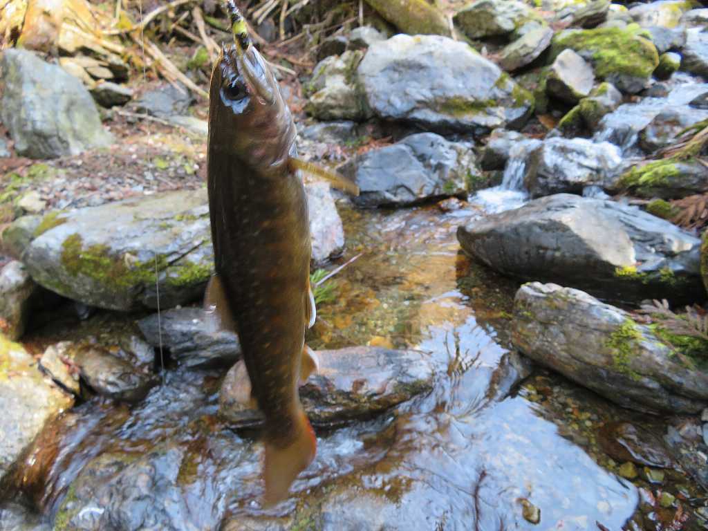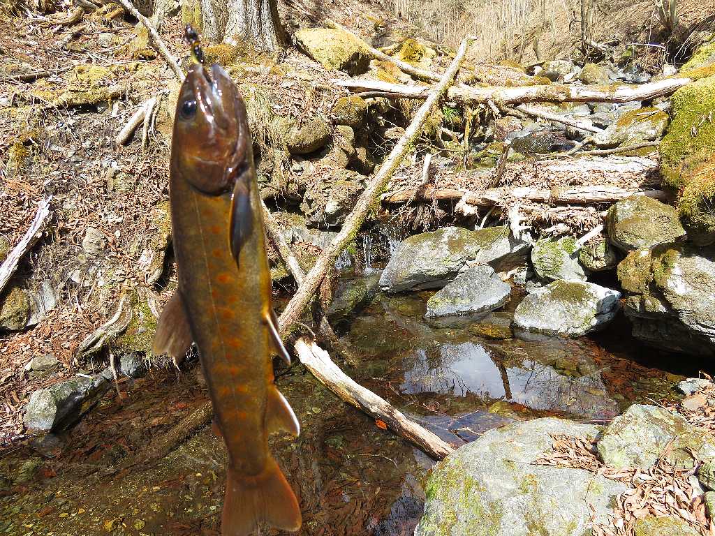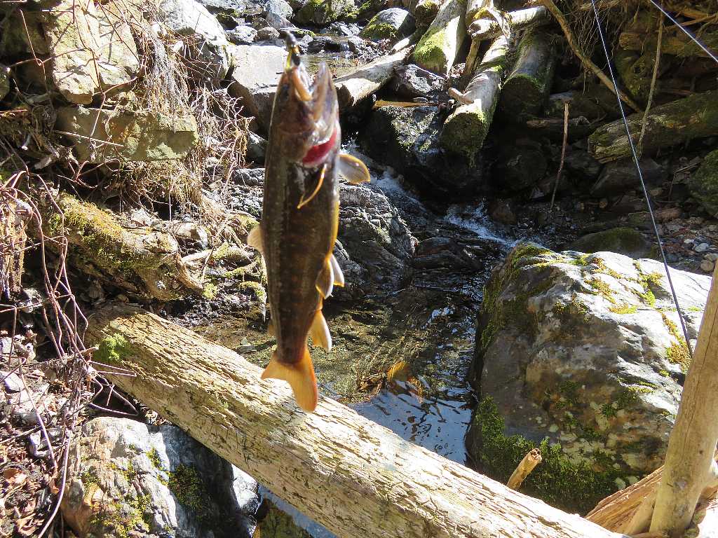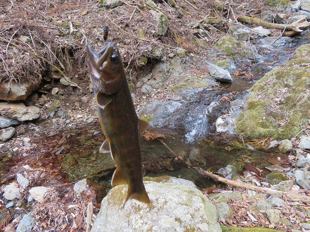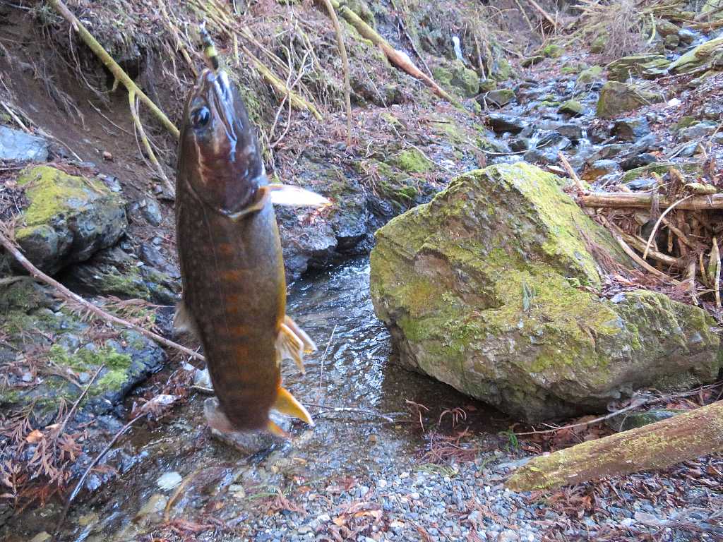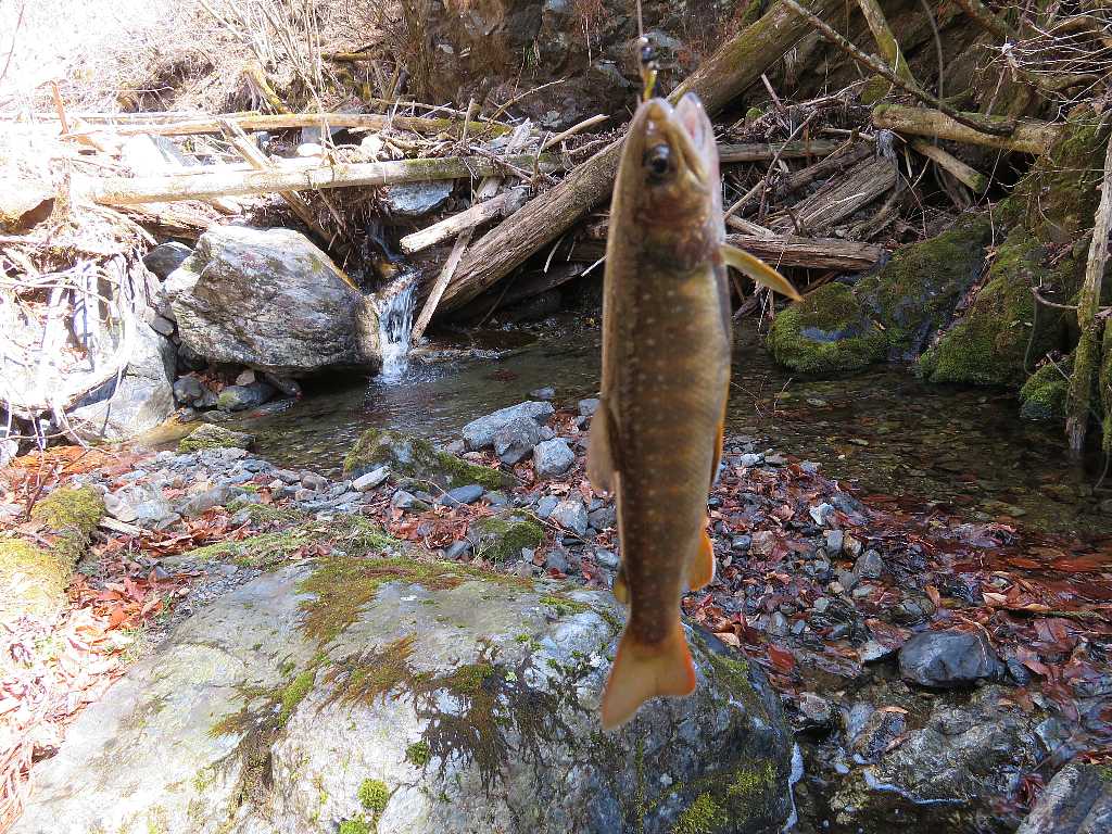 雨の源流イワナ釣り🐟(桐生市) 2023年03月11日 04:19 駐車スペースに先行者の車は無い外気温8℃小雨が降りだした・・・雨だから林道のある方の沢に行く何時もここから沢に降りる前日と思われる足跡があって魚影なしが続く・・・やっと釣れました雨が強くなったから岩陰で雨宿り雨が止んで陽が射すと急に釣れ出したが残り距離が少ない 釣れるのは流木などがあって釣り辛いポイントだけだこれで納竿して林道を戻る 林道から沢を見たらイワナが見えたから・・・ズーム最大で撮る 「渓流釣り(2023)」カテゴリの最新記事 タグ :#源流イワナ#雨のち晴れ#林道 < 前の記事次の記事 > コメント このブログにコメントするにはログインが必要です。 さんログアウト この記事には許可ユーザしかコメントができません。 コメントフォーム 名前 コメント 記事の評価 リセット リセット 顔 星 情報を記憶 コメントを投稿する