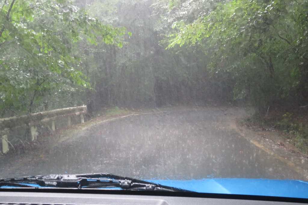 凄い雷雨で沢は泥濁り林道も