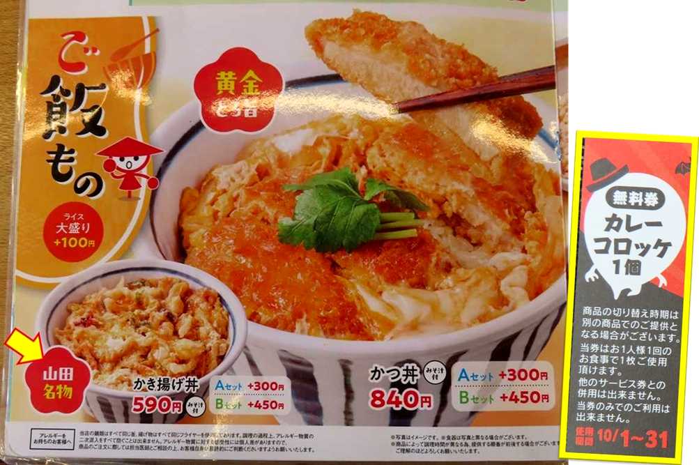 山田名物 かき揚げ丼 みそ汁付き590円🍚+カレーコロッケ無料券 2025年10月06日 04:11 山田うどん食堂邑楽町店山田名物かき揚げ丼+カレーコロッケ みそ汁付き590円味噌汁七味を少々・・・カレーコロッケかき揚げ丼 かき揚げが卵とじされてる食べてるとコリッと感じる物はイカだ 安くて美味しい御馳走様でした😋無料券が頂けました 「グルメ (そば・うどん)」カテゴリの最新記事 タグ :#山田うどん食堂#山田名物#かき揚げ丼#イカ#名物#味噌汁付き#無料券 < 前の記事次の記事 > コメント このブログにコメントするにはログインが必要です。 さんログアウト この記事には許可ユーザしかコメントができません。 コメントフォーム 名前 コメント 記事の評価 リセット リセット 顔 星 情報を記憶 コメントを投稿する