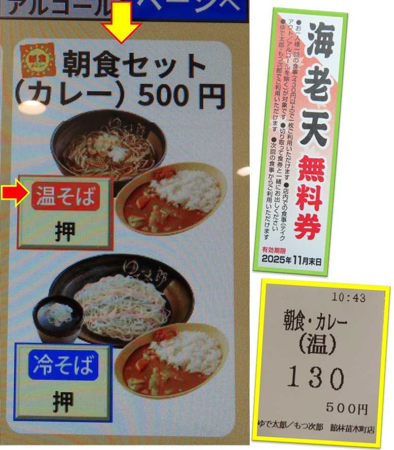 海老天無料券+朝食セット・カレー🦐(ゆで太郎館林苗木町店) 2025年10月10日 04:11 江戸切りそばゆで太郎館林苗木町店券売機海老天無料券を使用するそば湯を飲んで待つ海老天無料券+朝食セット・カレー 温かい蕎麦海老天薬味薬味を入れる蕎麦を食べる海老天を入れる 美味しくなる カレー 安くて美味しい 御馳走様でした😋 「グルメ (そば・うどん)」カテゴリの最新記事 タグ :#ゆで太郎#館林苗木町店#海老天無料券#海老天#無料券#カレー < 前の記事次の記事 > コメント このブログにコメントするにはログインが必要です。 さんログアウト この記事には許可ユーザしかコメントができません。 コメントフォーム 名前 コメント 記事の評価 リセット リセット 顔 星 情報を記憶 コメントを投稿する
