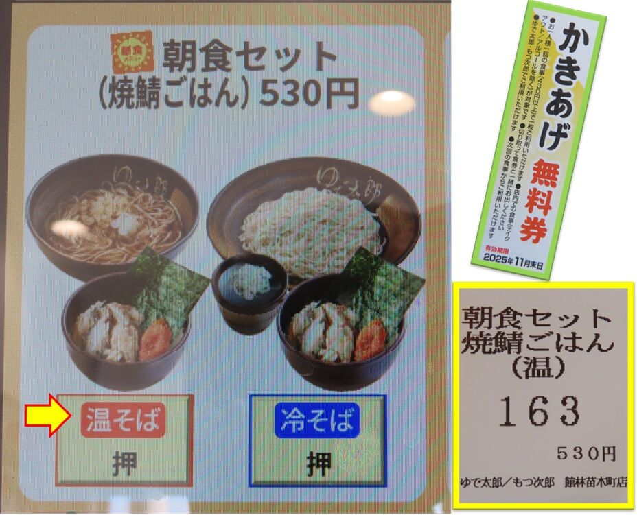 朝食セット焼鯖ごはん+かきあげ無料券🍚(ゆで太郎館林苗木町店) 2025年11月16日 04:11 江戸切りそばゆで太郎館林苗木町店店内の様子券売機そば湯を飲んで待つ朝食セット焼鯖ごはん+かきあげ無料券薬味薬味をいれる温かい蕎麦 かきあげを入れる美味しい 焼鯖ごはん炙りたらこが美味しい 御馳走様でした😋 「グルメ (そば・うどん)」カテゴリの最新記事 タグ :#ゆで太郎#館林苗木町店#焼鯖ごはん#炙りたらこ#EPA&DHA#かきあげ#無料券 < 前の記事次の記事 > コメント このブログにコメントするにはログインが必要です。 さんログアウト この記事には許可ユーザしかコメントができません。 コメントフォーム 名前 コメント 記事の評価 リセット リセット 顔 星 情報を記憶 コメントを投稿する