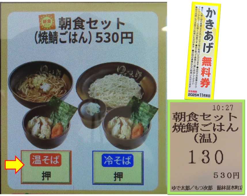 朝食セット焼鯖ごはん+かきあげ無料券🍚(ゆで太郎館林苗木町店) 2025年11月25日 04:11 江戸切りそばゆで太郎館林苗木町店店内の様子券売機そば湯を飲んで待つ朝食セット焼鯖ごはん+かきあげ無料券薬味薬味をいれる温かい蕎麦 かきあげを入れる美味しい 焼鯖ごはん炙りたらこが美味しい 御馳走様でした😋 「グルメ (そば・うどん)」カテゴリの最新記事 タグ :#ゆで太郎#館林苗木町店#焼鯖ごはん#炙りたらこ#EPA&DHA#かきあげ#無料券 < 前の記事次の記事 > コメント このブログにコメントするにはログインが必要です。 さんログアウト この記事には許可ユーザしかコメントができません。 コメントフォーム 名前 コメント 記事の評価 リセット リセット 顔 星 情報を記憶 コメントを投稿する