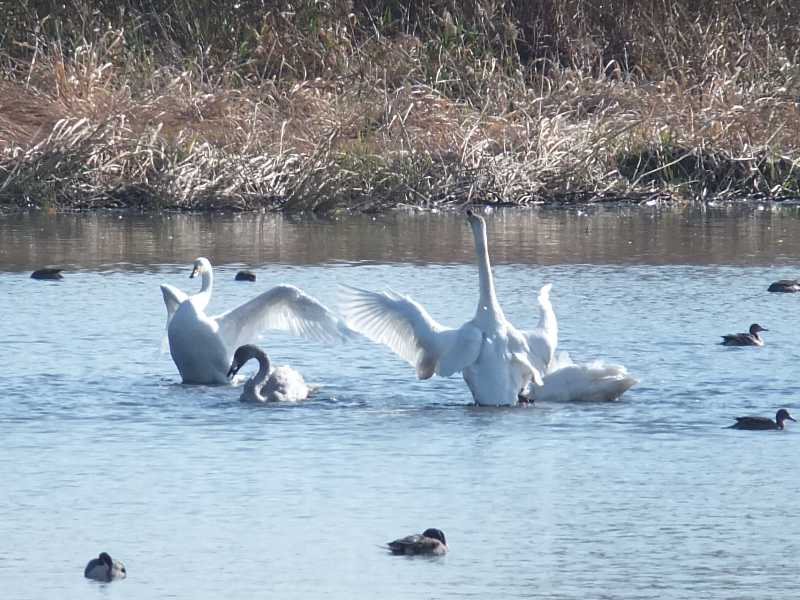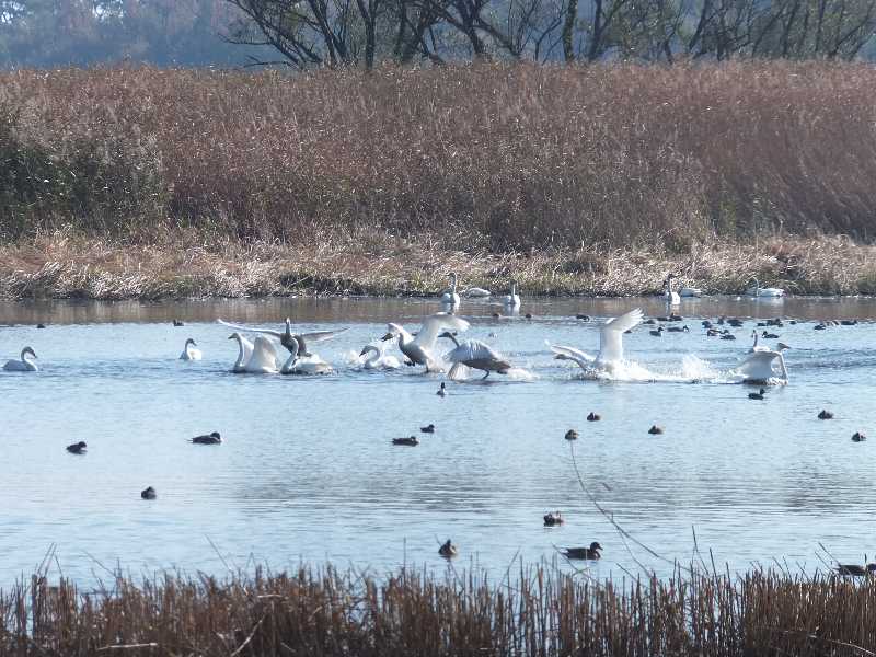 多々良沼の白鳥を撮って来た(ガバ沼) 2019年12月02日 04:11 マニアが沢山いました 白鳥までは遠いな~今日は30羽いるんだ カモが飛んだ~白鳥が鳴いて騒がしい・・・・仲間を呼んでいるのかな~鳴くときは動きがあるからシャッターチャンスがある餌を蒔くとカモが集まってくるこれはカワウだ今日はアメリカコハクチョウが来ている・・・探して撮ったが・・・真ん中で頭の黒いのがアメリカコハクチョウこの後はヨシの陰に入って姿が消えてしまったこれは西側の釣り堀にいたオオバン 「野鳥と野生動物」カテゴリの最新記事 タグ :#多々良沼#ガバ沼#白鳥#アメリカコハクチョウ < 前の記事次の記事 > コメント このブログにコメントするにはログインが必要です。 さんログアウト この記事には許可ユーザしかコメントができません。 コメントフォーム 名前 コメント 記事の評価 リセット リセット 顔 星 情報を記憶 コメントを投稿する