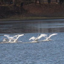 鳴きながら東の空から飛んでくるオオハクチョウ🦢(多々良沼公園)