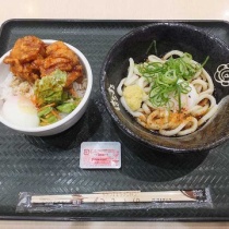温玉ぶっかけと鶏の唐揚げ丼セット(はなまるうどんイオン太田)
