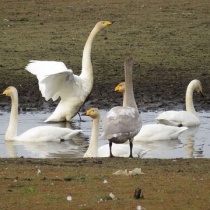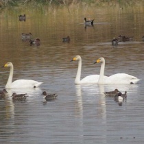 コウノトリ・ハクチョウ・クビワキンクロ等を撮る(多々良沼公園)