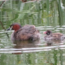 カイツブリの親子多々良沼孫兵衛川流れ込み付近幼鳥何か捕ったようだ・・・魚を銜えている幼鳥が貝のような物を捕った左・幼鳥 右親鳥最後まで見て頂きありがとうございました ...